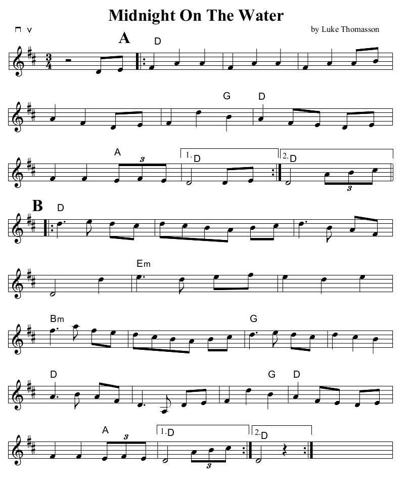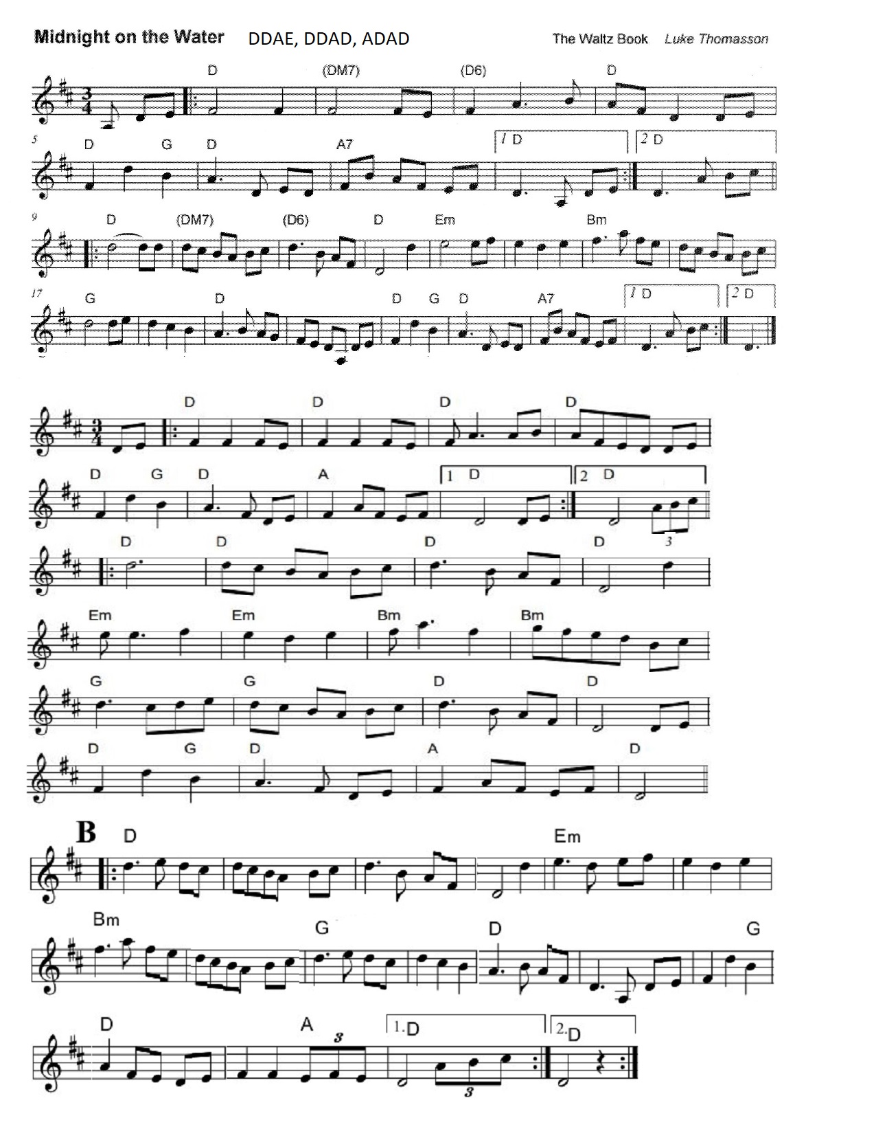 Midnight on the WaterAccording to the Waltz Book I, Luke Thomasson wrote it, but Benny Thomasson holds the copywright on it through the Winwood Music Company. Midnight on the Water -> Bonapartes Retreat -> Margarets